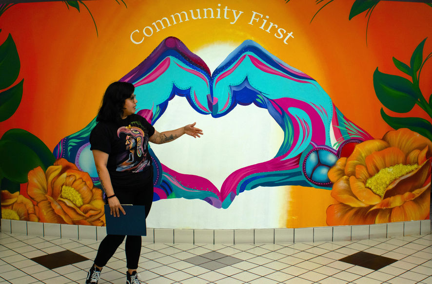 Over the course of 5 weeks we partnered with Officers, teachers and staff from SAUSD to create a safe space where Students can express themselves and were asked, What does community first mean to you? I took there ideas and concepts and developed a design that can radiate the love they have for the culture and people that make up Santa Ana. This project also created an opportunity for students to intern and help paint the mural along with officers participating in the creation of this piece. We hope to continue to hold onto that love that we all have for the city of Santa Ana and continue to radiate love, peace and unity throughout the city.